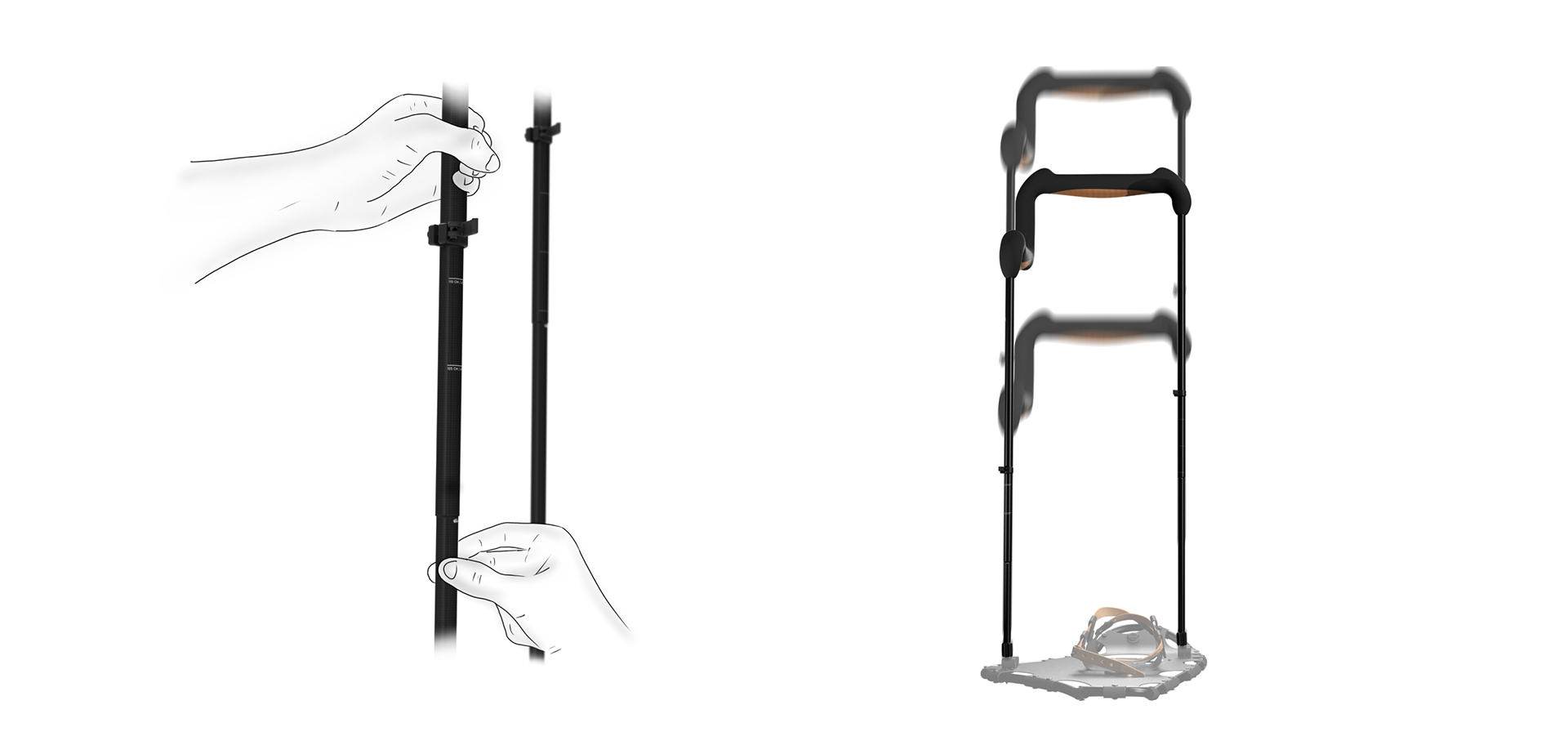 Expand telescoping poles to the desired height and snap close with locking lever.